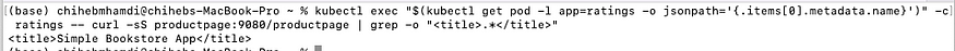 kubectl exec "$(kubectl get pod -l app=ratings -o jsonpath='{.items[0].metadata.name}')" -c ratings -- curl -sS productpage:9080/productpage | grep -o "<title>.*</title>"