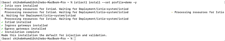 Once Istioctl is installed, you need to configure the demo profile for our scenario by executing the following command in the terminal: